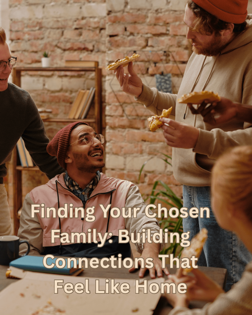Your chosen family may include a diverse array of relationships, friends who’ve become siblings, mentors who provide parental guidance, peers who understand your journey in ways others cannot. Together, they create a network of support that complements (or sometimes substitutes for) traditional family structures.