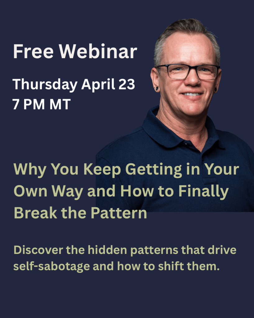On Thursday, April 23 at 7 PM MT, I’m hosting a free webinar called Why You Keep Getting In Your Own Way and How to Finally Break the Pattern.